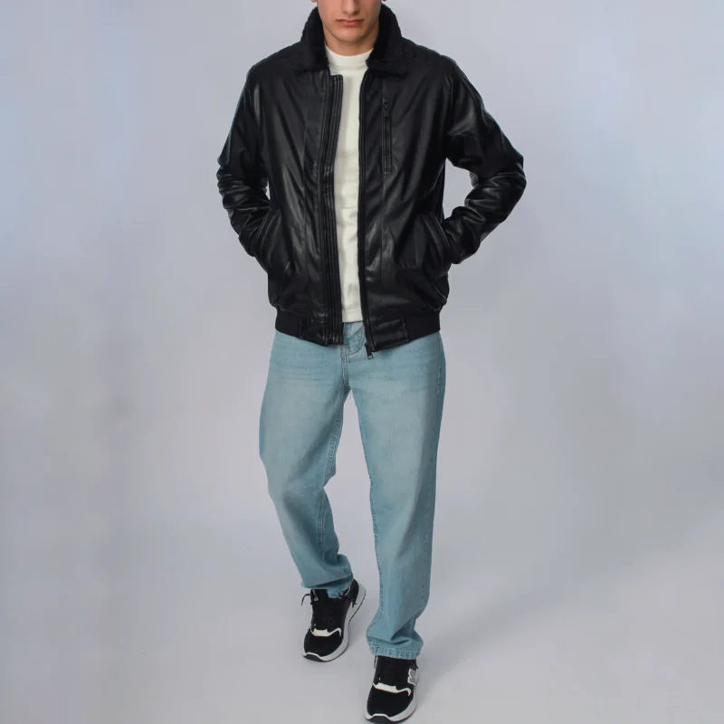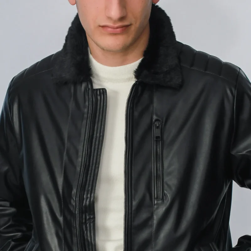 جاكيت جلد ياقه فرو – اسود- JK193