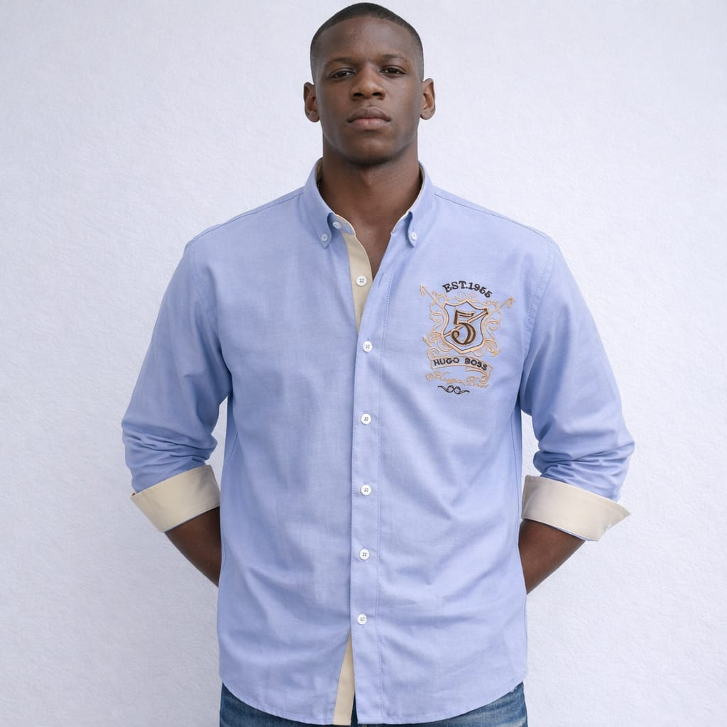 قميص كم قطن تطريز -كحلي CH167