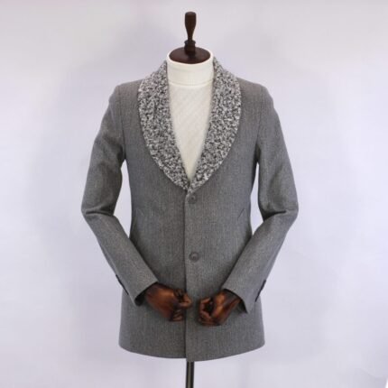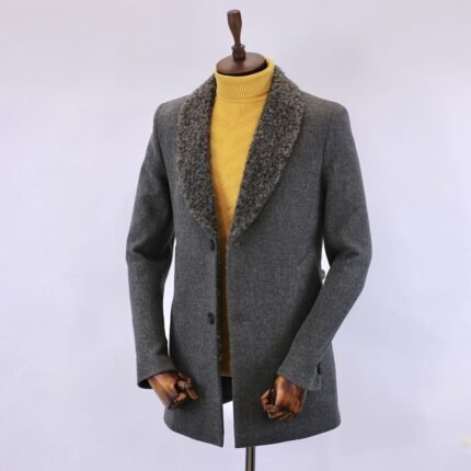 بالطو جوخ – رمادي فاتح -ياقة كول شال فرو – CT101