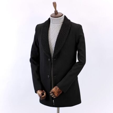 بالطو جوخ – اسود -ياقة كول شال فرو – CT103