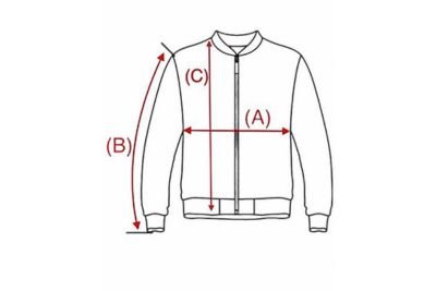 المقاس عرض الجاكيت (A) طول الكم (B) طول الجاكيت (C) متوسط التلبيس حسب الوزن (كيلو)